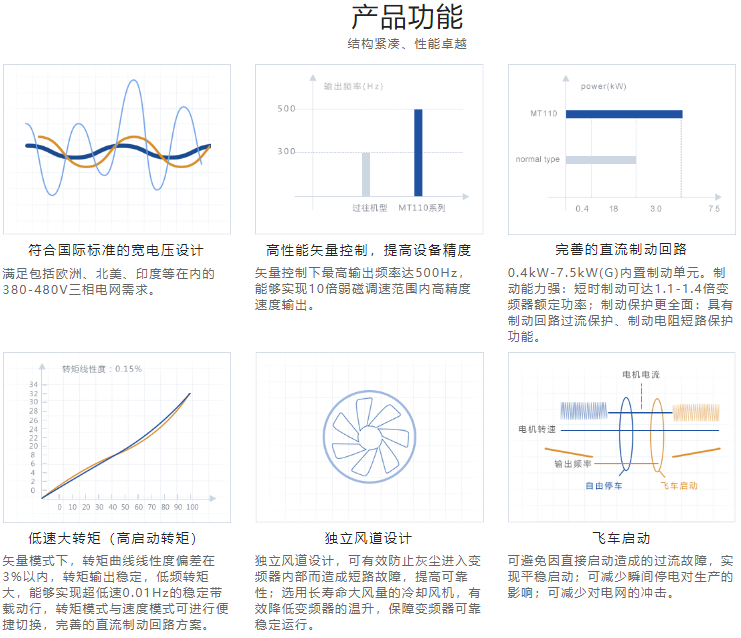 ②體積小,先進(jìn)的熱設(shè)計(jì),比同類型變頻器體積大大縮小; 接線方便,控制回路端子采用彈簧式端子,免螺絲安裝,效率高;