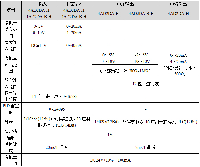 4通道14bit模擬量輸入(電流、電壓可選); 2通道12bit模擬量輸出(電流、電壓可選) |