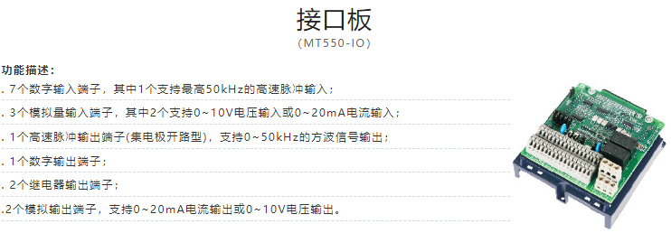 ⑥兼容MT500的所有擴展卡配件:如編碼器PG卡、通信擴展卡、以及IO擴展卡等;