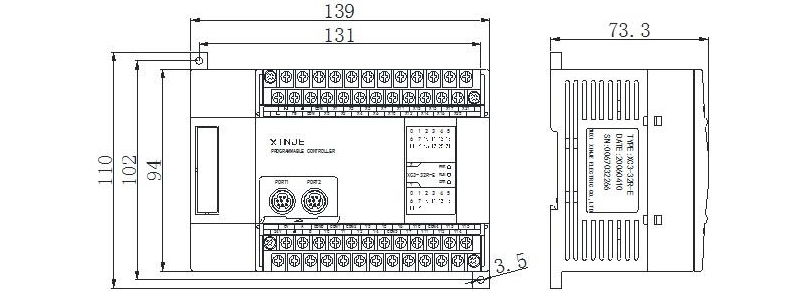 備注:XC3-14點(diǎn)的基本單元不具有通訊口2。