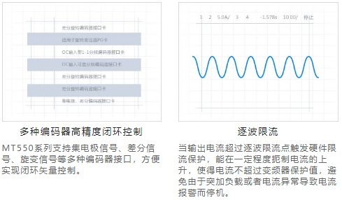 ④先進(jìn)的電機(jī)控制算法,無(wú)編碼矢量控制(SVC)時(shí)零速力矩達(dá)150%以上;